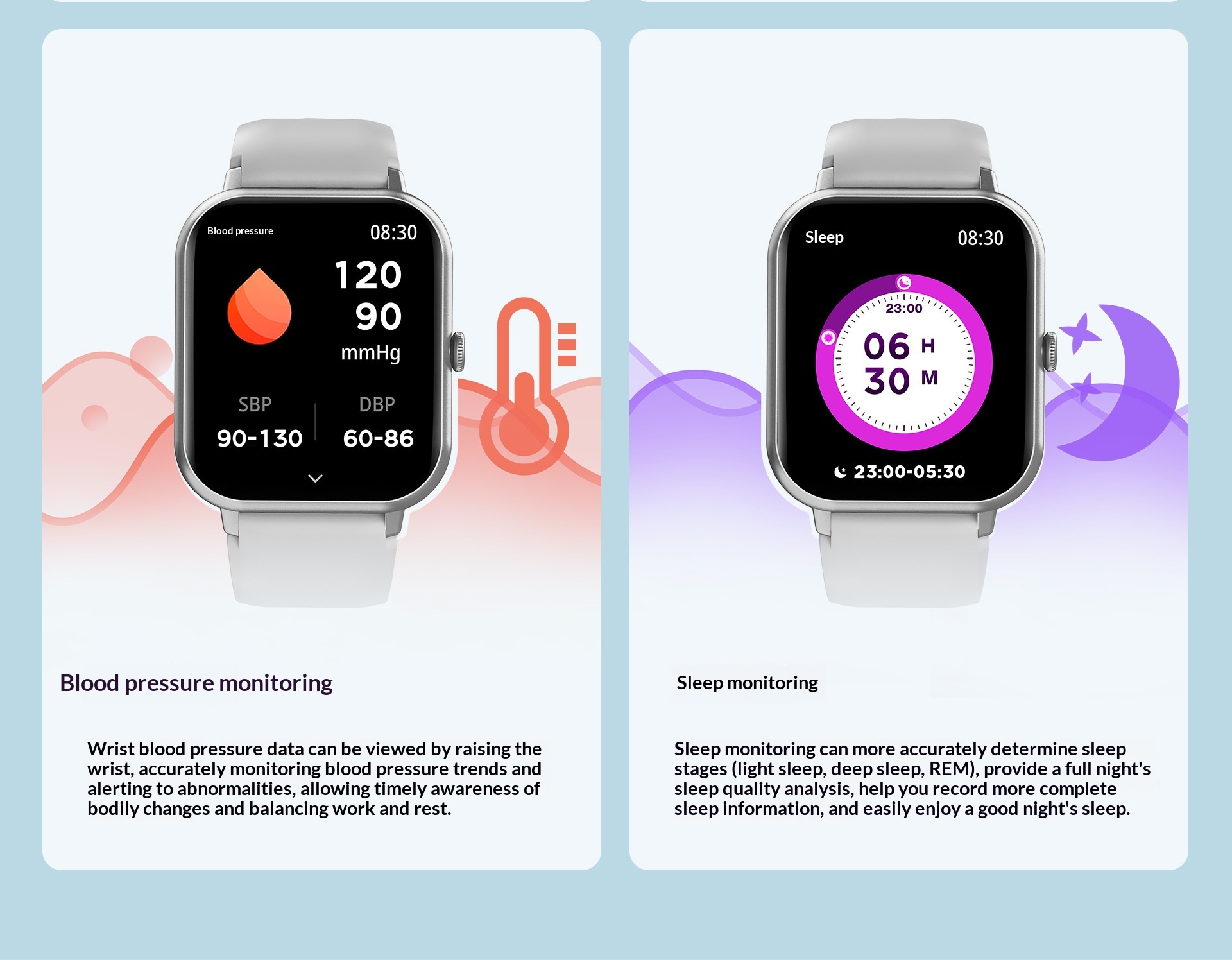 Features: Waterproof, Photography, Pedometer, Heart Rate Monitoring, Blood Pressure Measurement, Social Entertainment, Bluetooth Calling, Smart Notifications, Remote Selfie, Sleep Monitoring, Blood Oxygen Detection